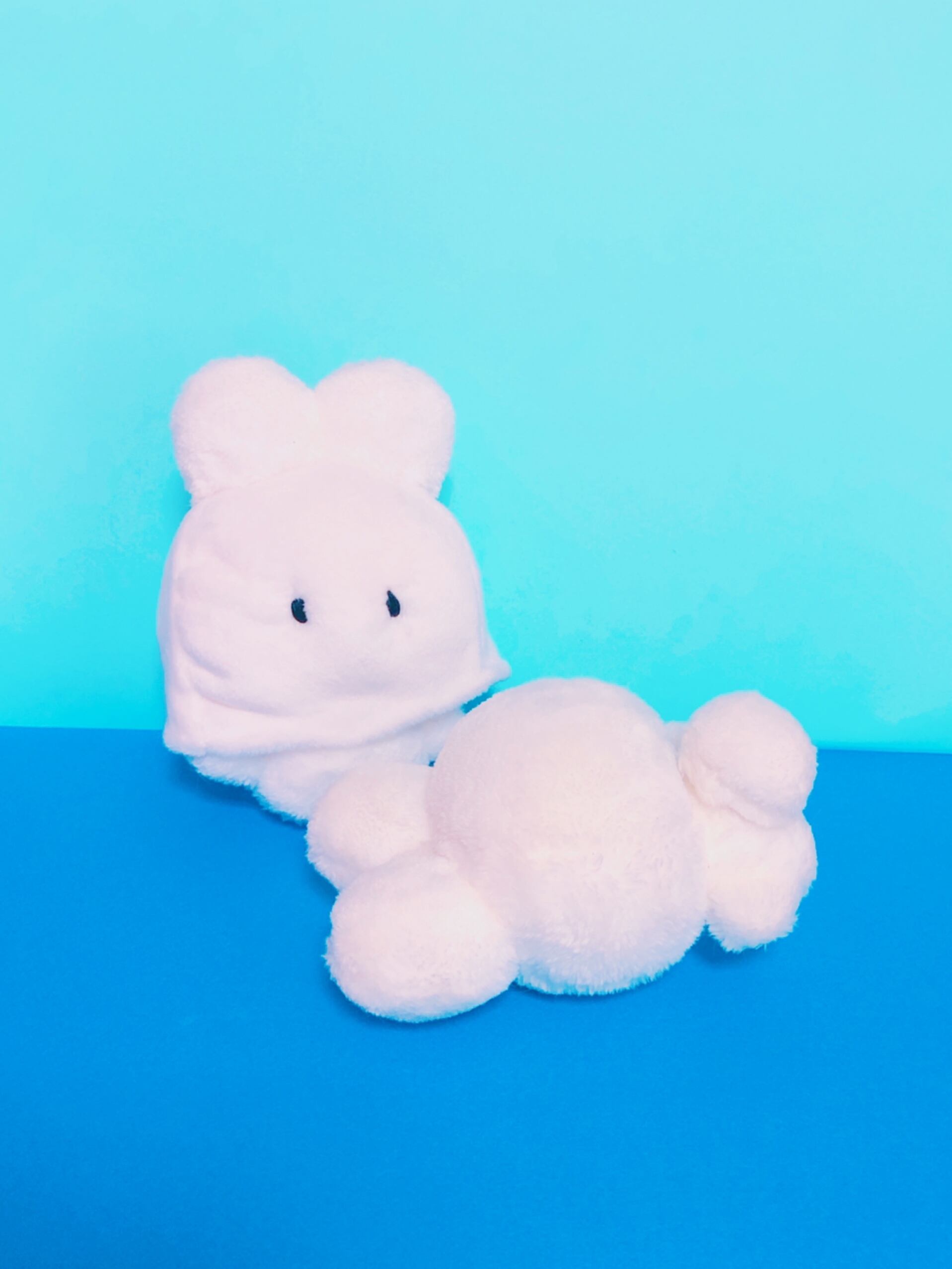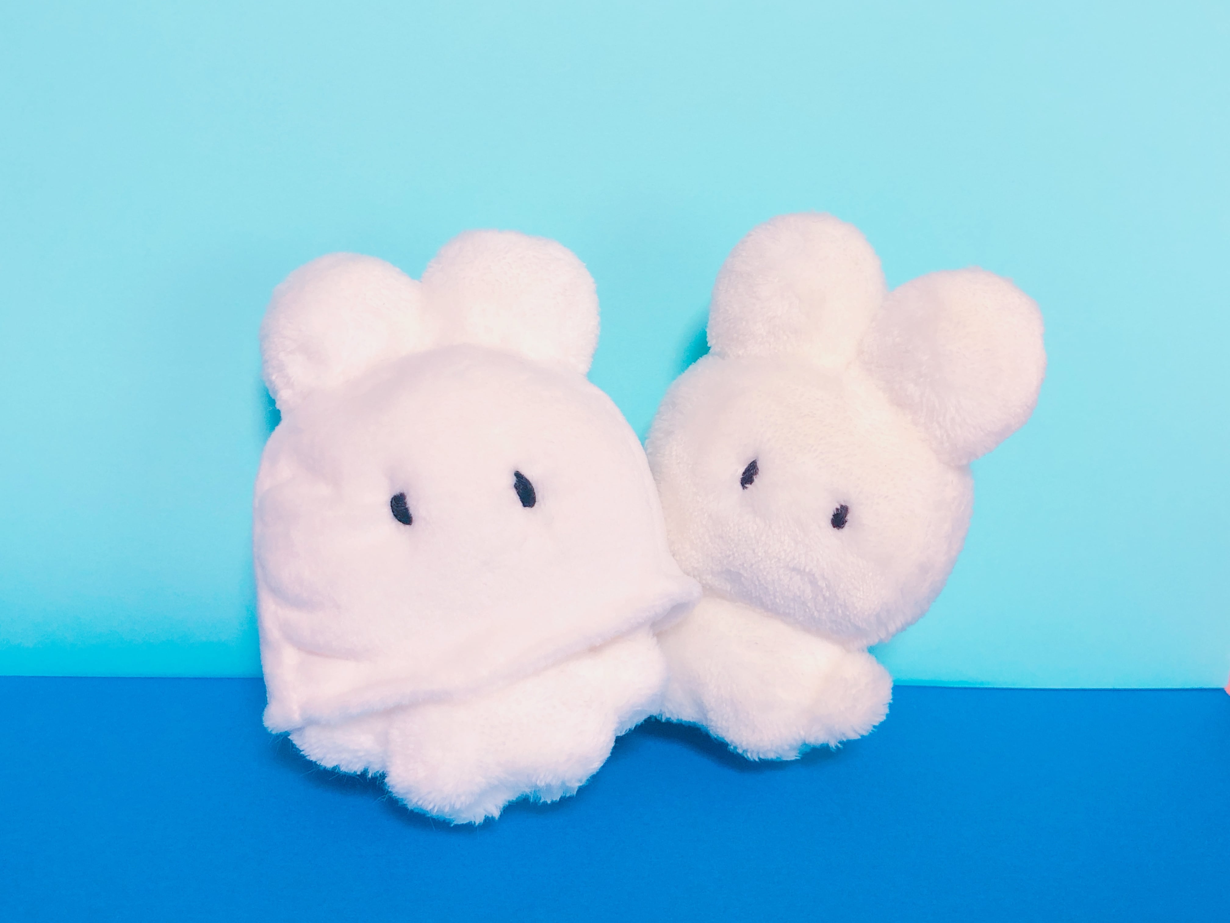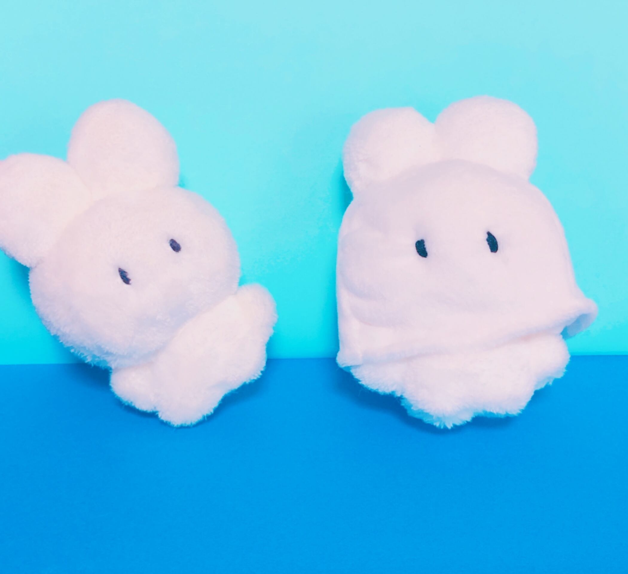何やら白い布の下から小さい足としっぽが