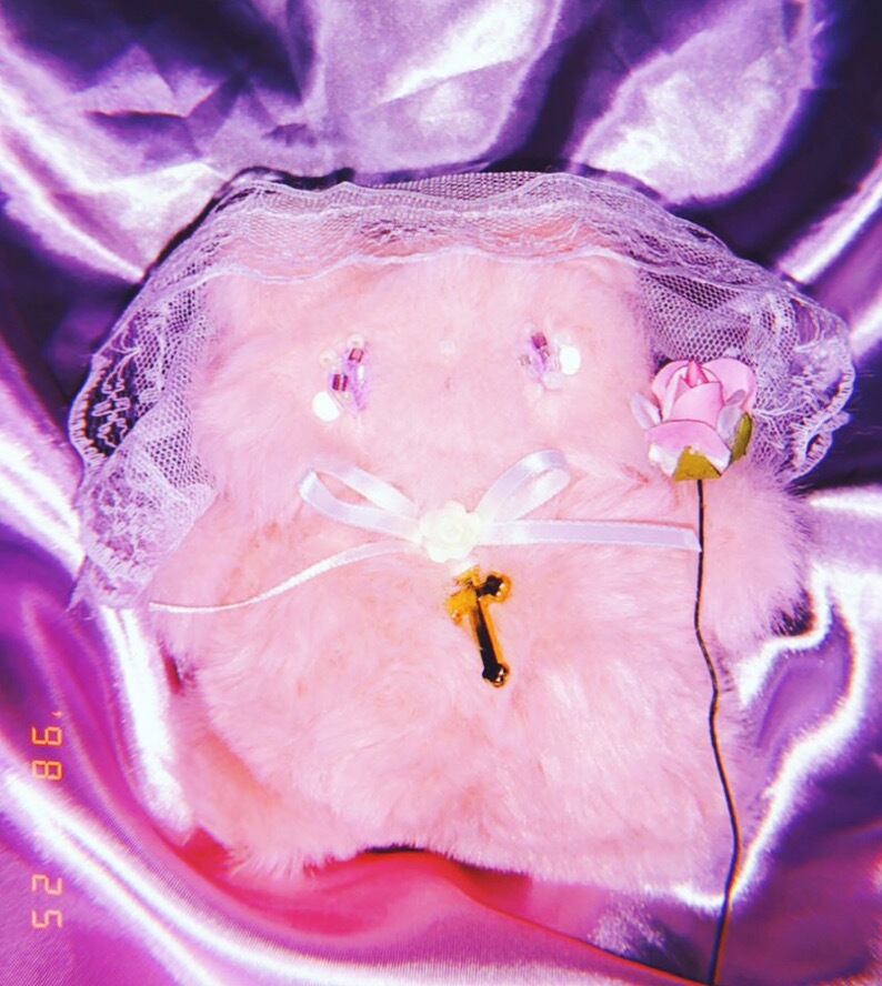 (バラの花は縫い付けてありませんので、そっと手にまきつけてあげたり、一緒に飾ってあげたりしてお楽しみ下さいませ)