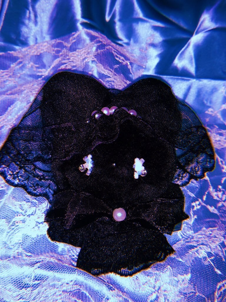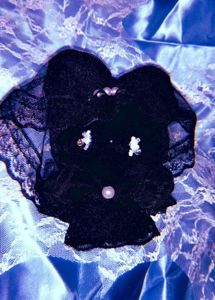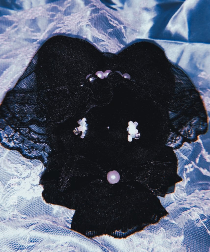透き通ったくろいベールに、綺麗なパールの飾りがキラリとひかります。