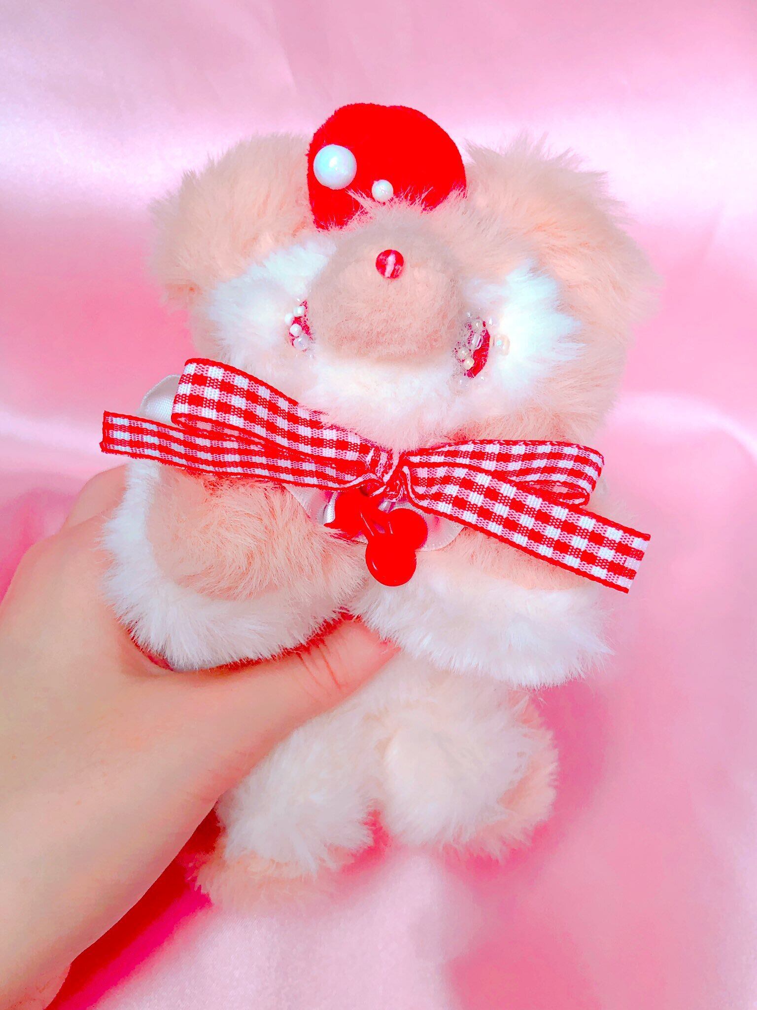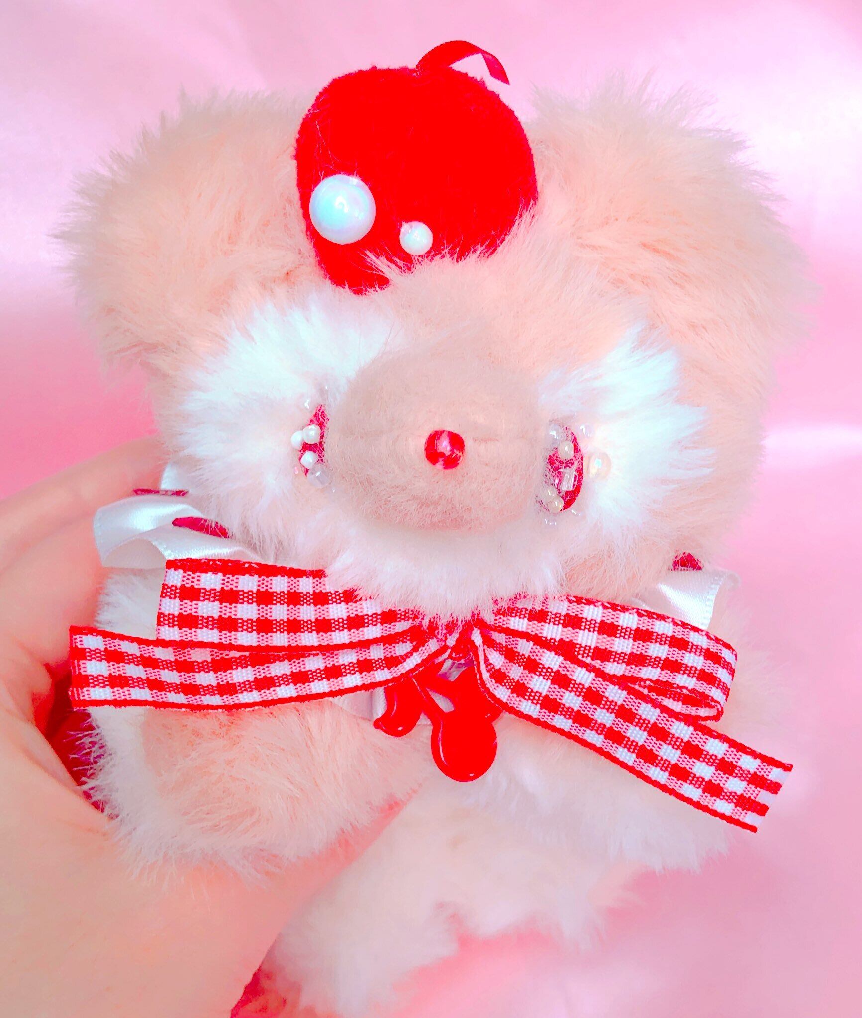 さくらんぼが大好きなこぐまのぬいぐるみです。