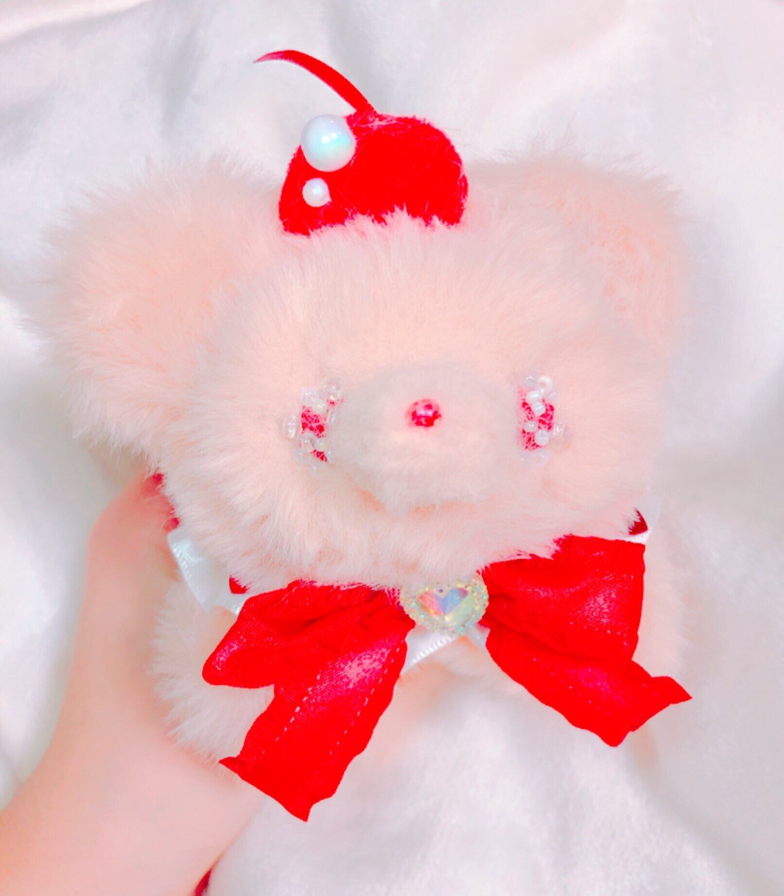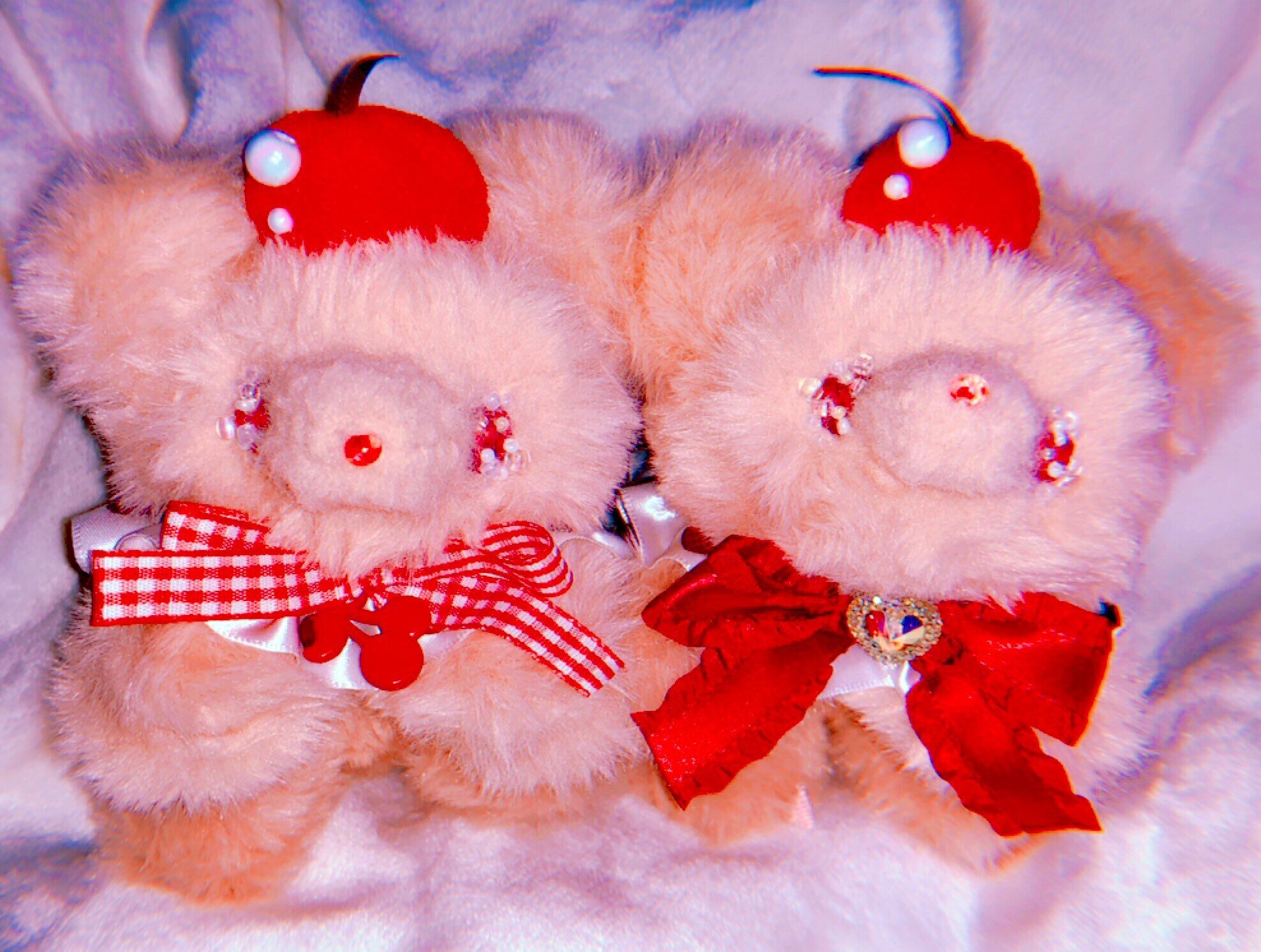 さくらんぼが大好きなこぐまのぬいぐるみです。
