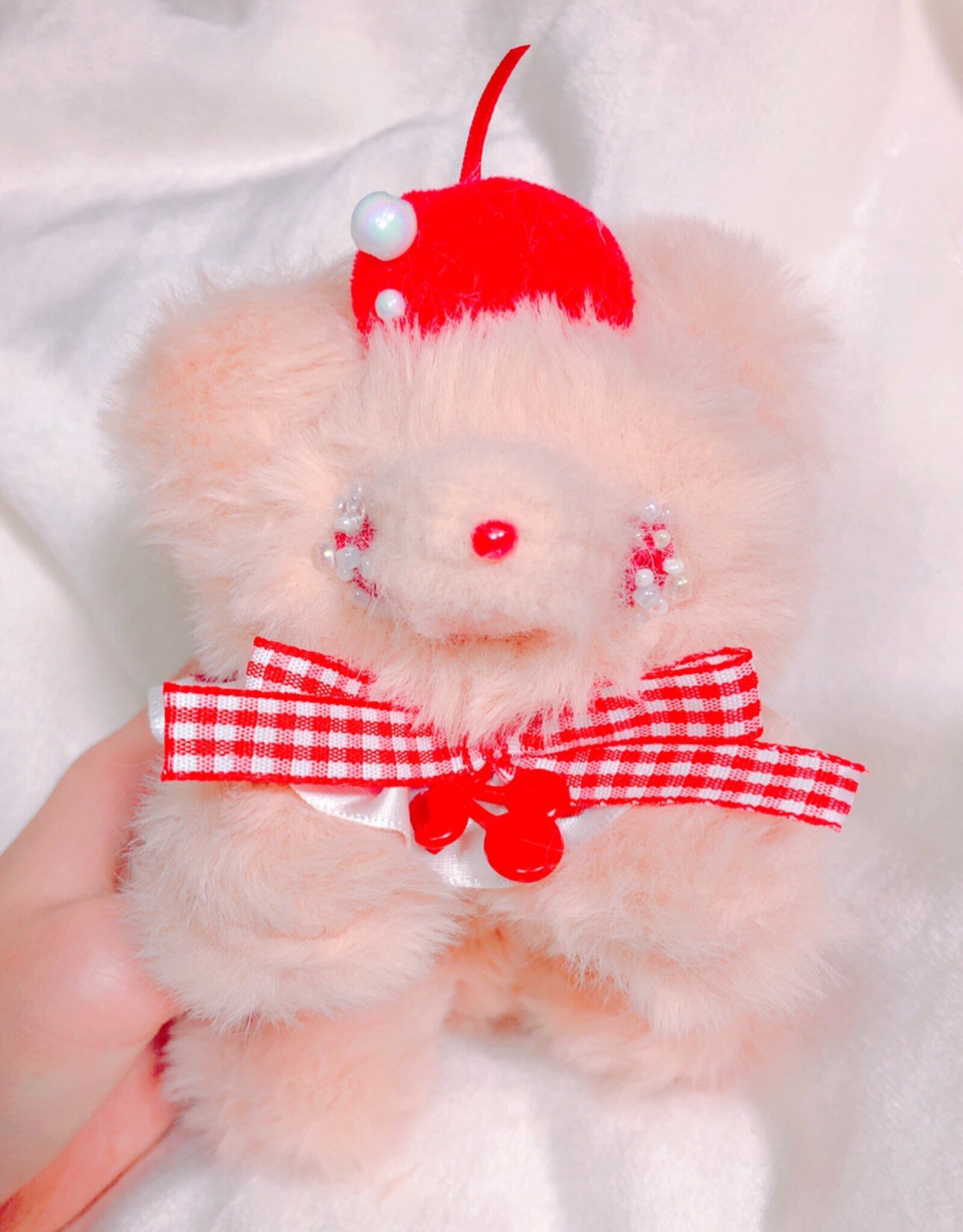さくらんぼが大好きなこぐまのぬいぐるみです。