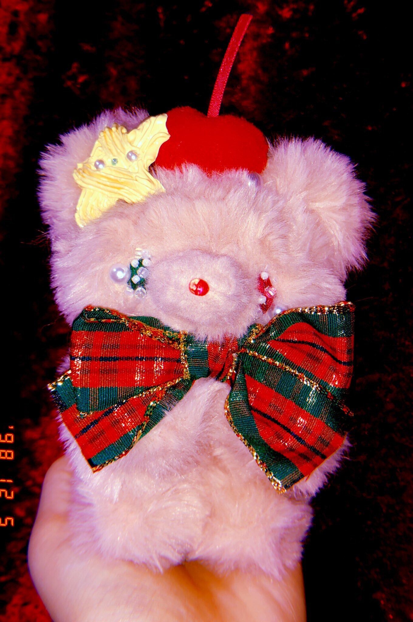 流れ星のクッキーとさくらんぼで飾り付けされた、くまちゃんのパフェです。