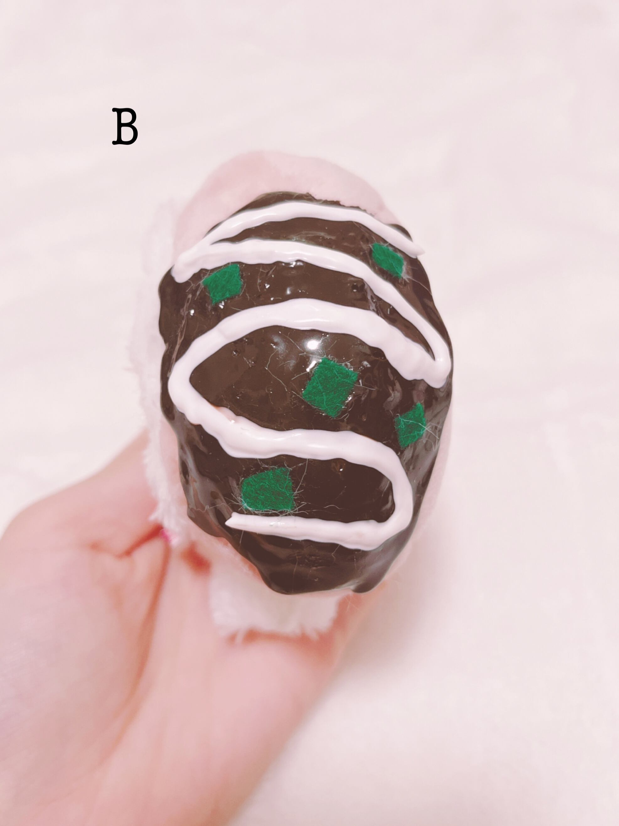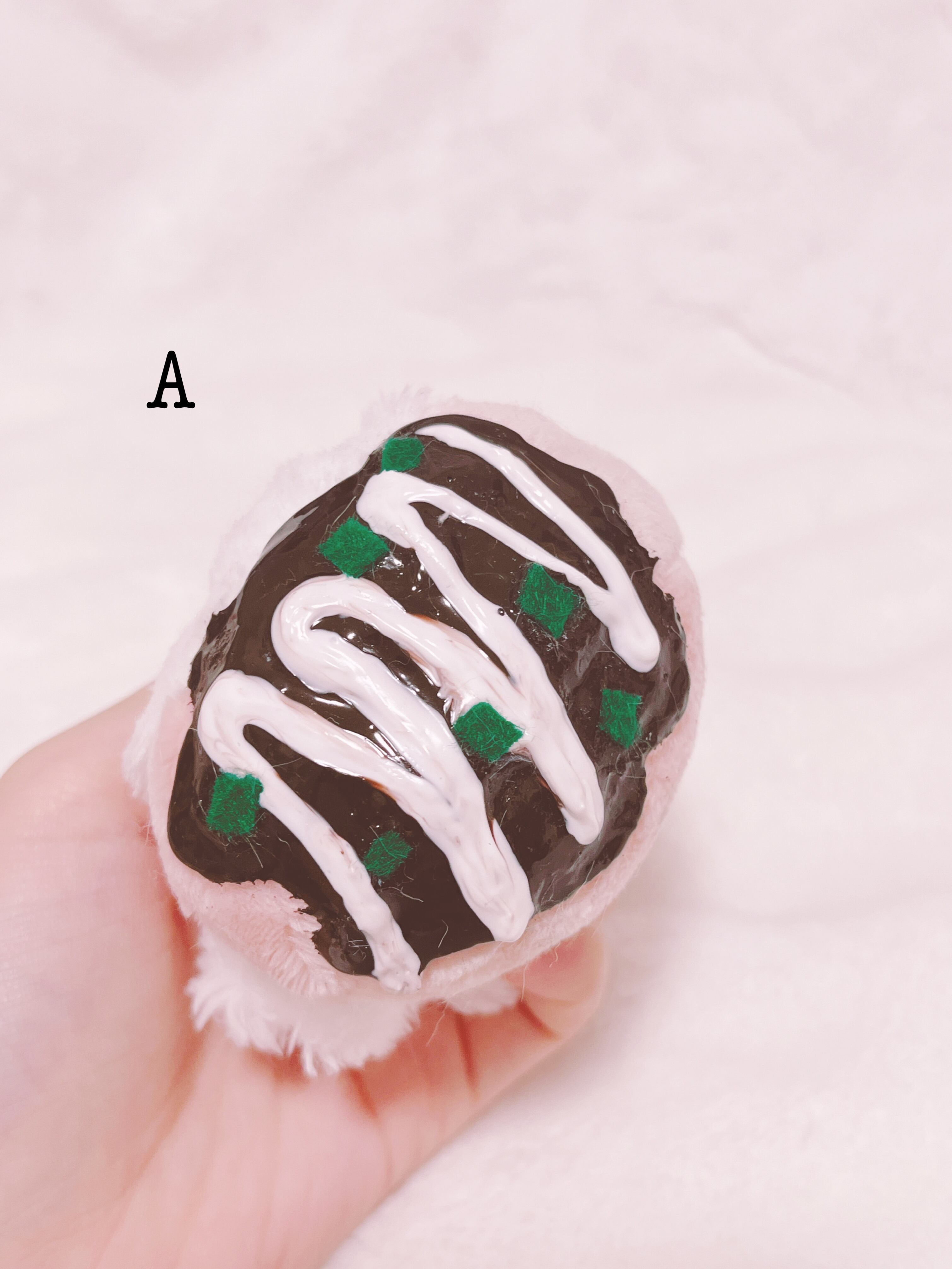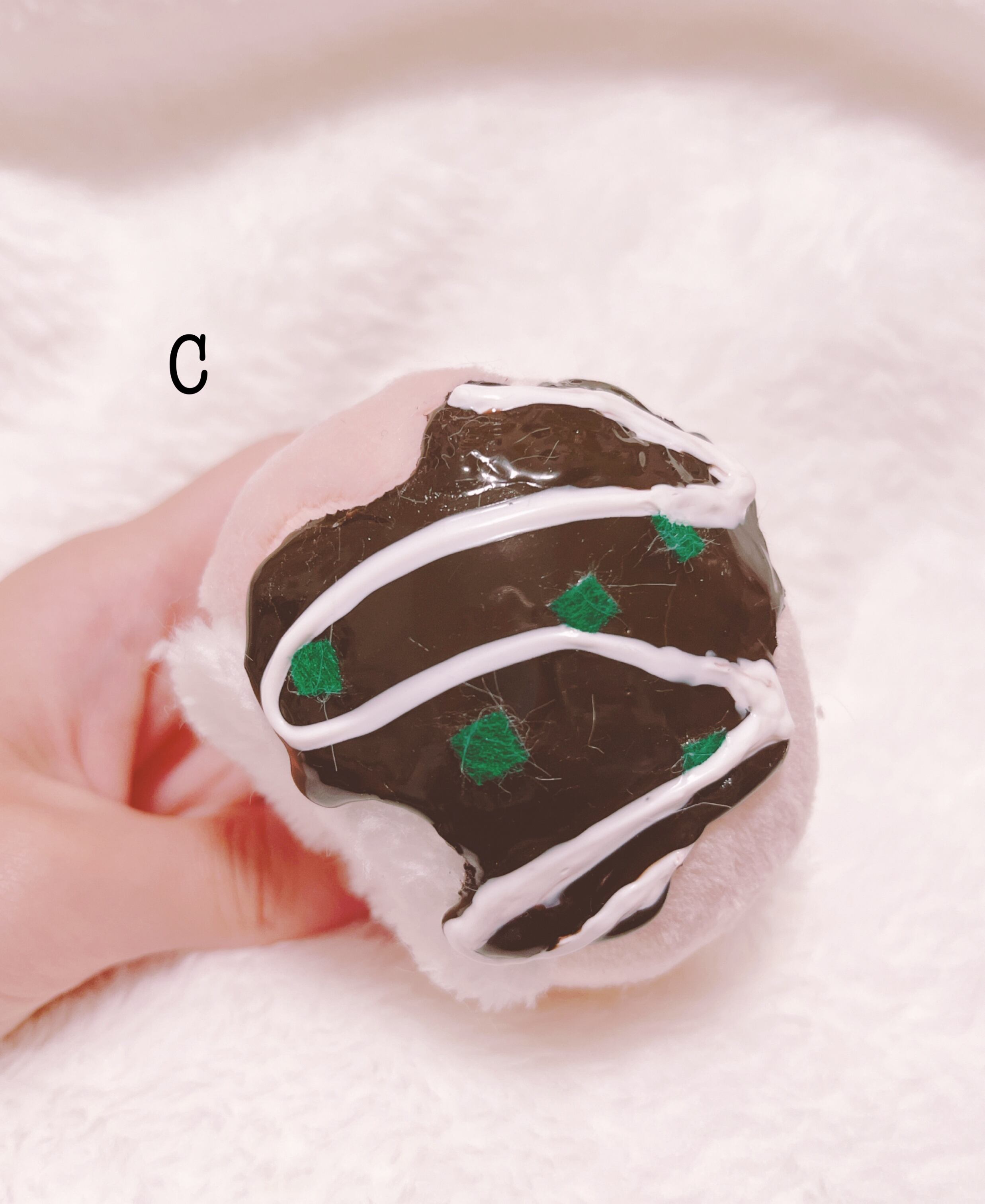 たこやきのタコがおいしくて、真ん中から夢中でたべていたら、すっぽり頭にはまりました