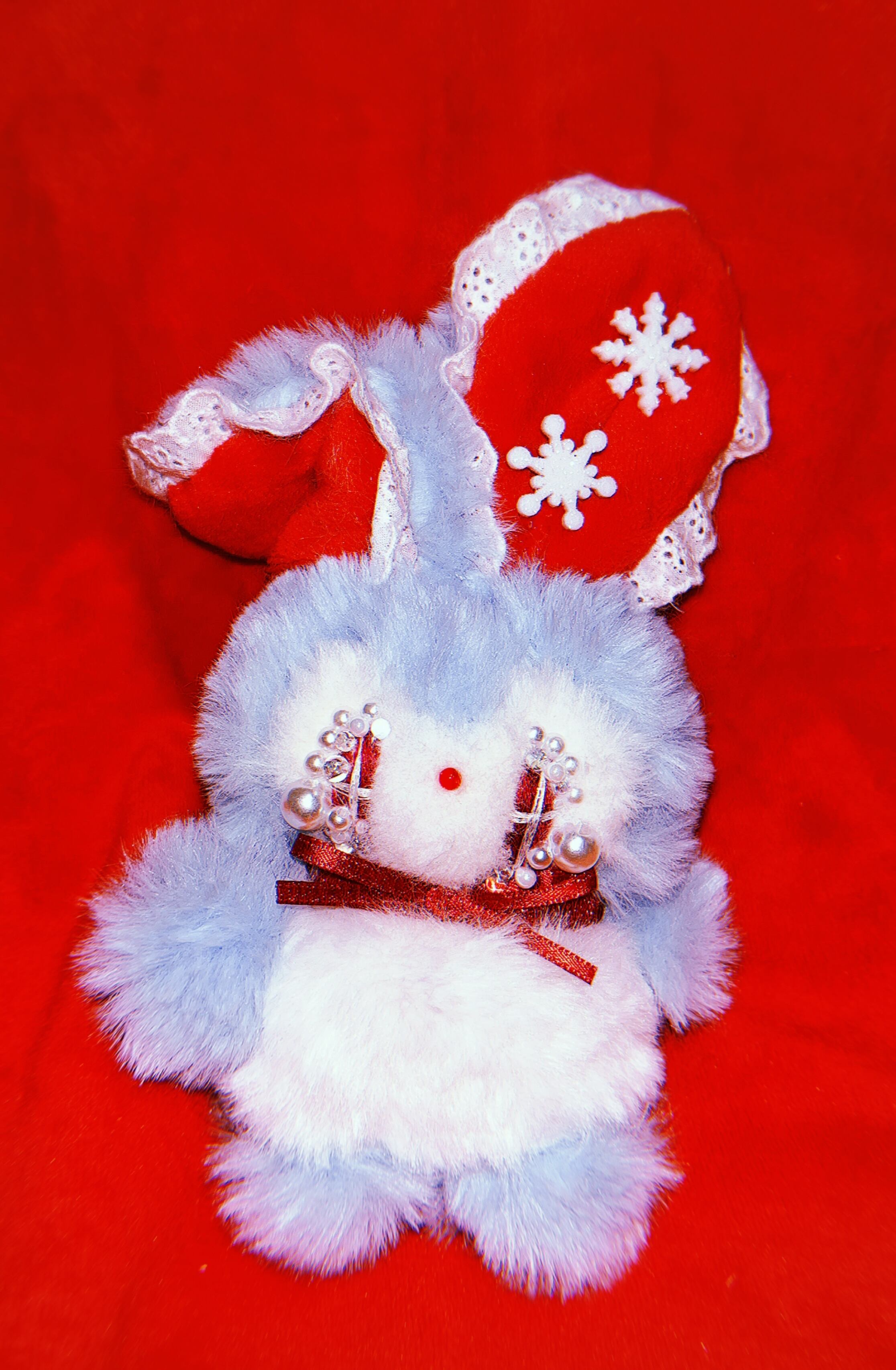 お耳に綺麗な雪の結晶がついています